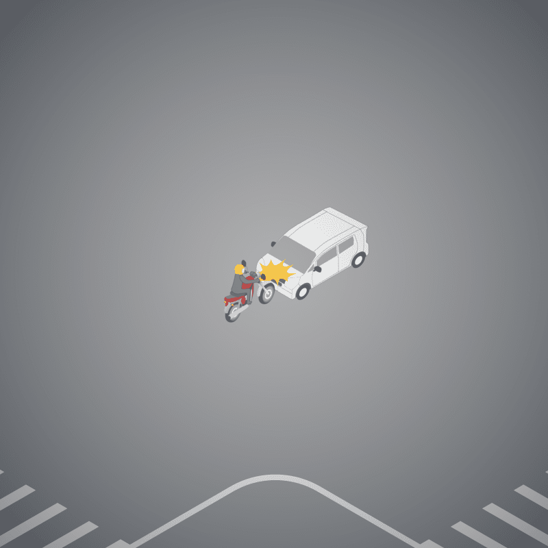 ・イラストに使用している各要素(車、背景、車、天候、信号、衝突地点など)は、代表的なイメージをイラスト化しており、色や形状等含め現実の事故の状況とは異なります。あくまで、事故のイメージとして参考までにご活用ください。