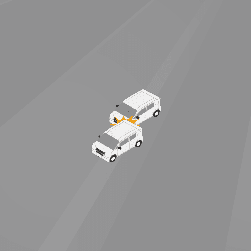 ・イラストに使用している各要素(車、背景、車、天候、信号、衝突地点など)は、代表的なイメージをイラスト化しており、色や形状等含め現実の事故の状況とは異なります。あくまで、事故のイメージとして参考までにご活用ください。