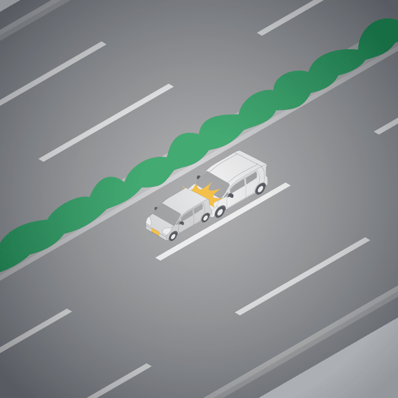 ・イラストに使用している各要素(車、背景、車、天候、信号、衝突地点など)は、代表的なイメージをイラスト化しており、色や形状等含め現実の事故の状況とは異なります。あくまで、事故のイメージとして参考までにご活用ください。