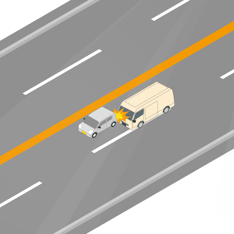 ・イラストに使用している各要素(車、背景、車、天候、信号、衝突地点など)は、代表的なイメージをイラスト化しており、色や形状等含め現実の事故の状況とは異なります。あくまで、事故のイメージとして参考までにご活用ください。