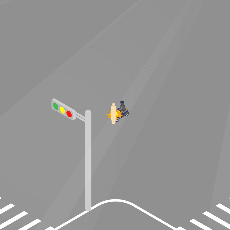 ・イラストに使用している各要素(車、背景、車、天候、信号、衝突地点など)は、代表的なイメージをイラスト化しており、色や形状等含め現実の事故の状況とは異なります。あくまで、事故のイメージとして参考までにご活用ください。