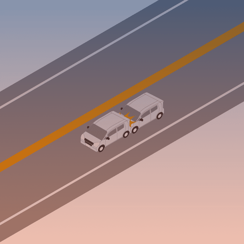 ・イラストに使用している各要素(車、背景、車、天候、信号、衝突地点など)は、代表的なイメージをイラスト化しており、色や形状等含め現実の事故の状況とは異なります。あくまで、事故のイメージとして参考までにご活用ください。