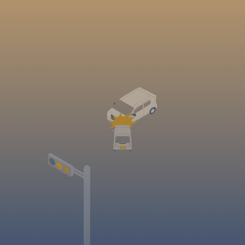 ・イラストに使用している各要素(車、背景、車、天候、信号、衝突地点など)は、代表的なイメージをイラスト化しており、色や形状等含め現実の事故の状況とは異なります。あくまで、事故のイメージとして参考までにご活用ください。