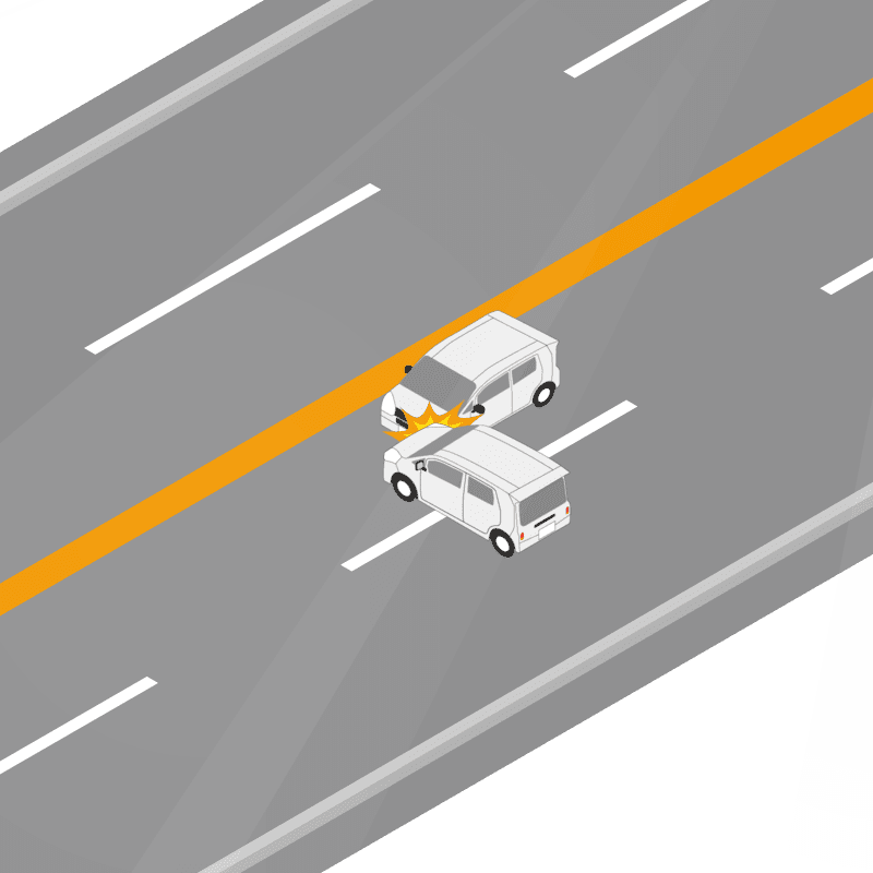 ・イラストに使用している各要素(車、背景、車、天候、信号、衝突地点など)は、代表的なイメージをイラスト化しており、色や形状等含め現実の事故の状況とは異なります。あくまで、事故のイメージとして参考までにご活用ください。