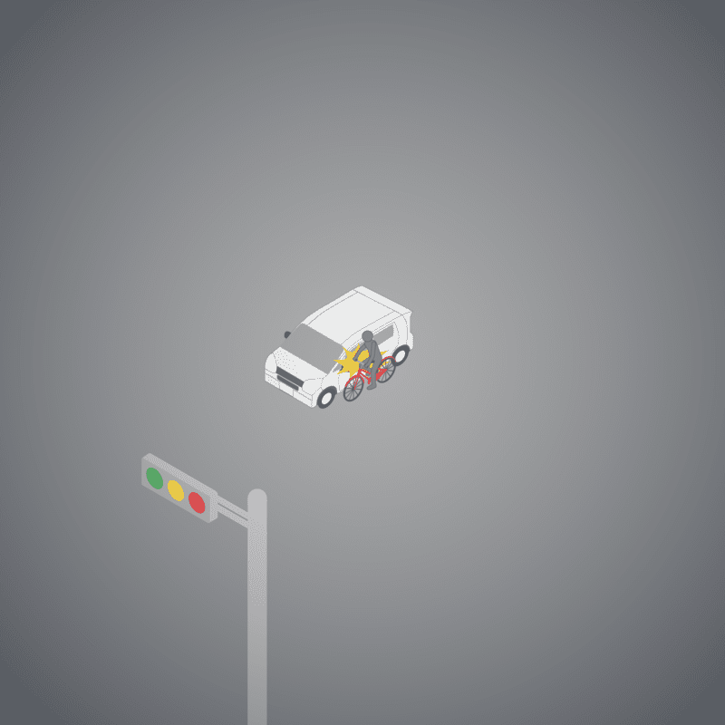 ・イラストに使用している各要素(車、背景、車、天候、信号、衝突地点など)は、代表的なイメージをイラスト化しており、色や形状等含め現実の事故の状況とは異なります。あくまで、事故のイメージとして参考までにご活用ください。