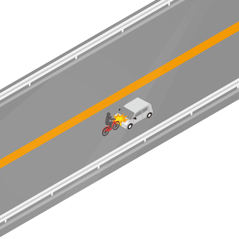 ・イラストに使用している各要素(車、背景、車、天候、信号、衝突地点など)は、代表的なイメージをイラスト化しており、色や形状等含め現実の事故の状況とは異なります。あくまで、事故のイメージとして参考までにご活用ください。