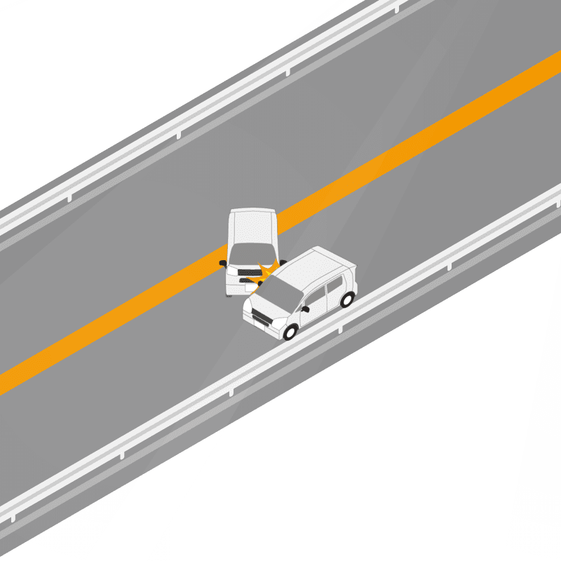 ・イラストに使用している各要素(車、背景、車、天候、信号、衝突地点など)は、代表的なイメージをイラスト化しており、色や形状等含め現実の事故の状況とは異なります。あくまで、事故のイメージとして参考までにご活用ください。