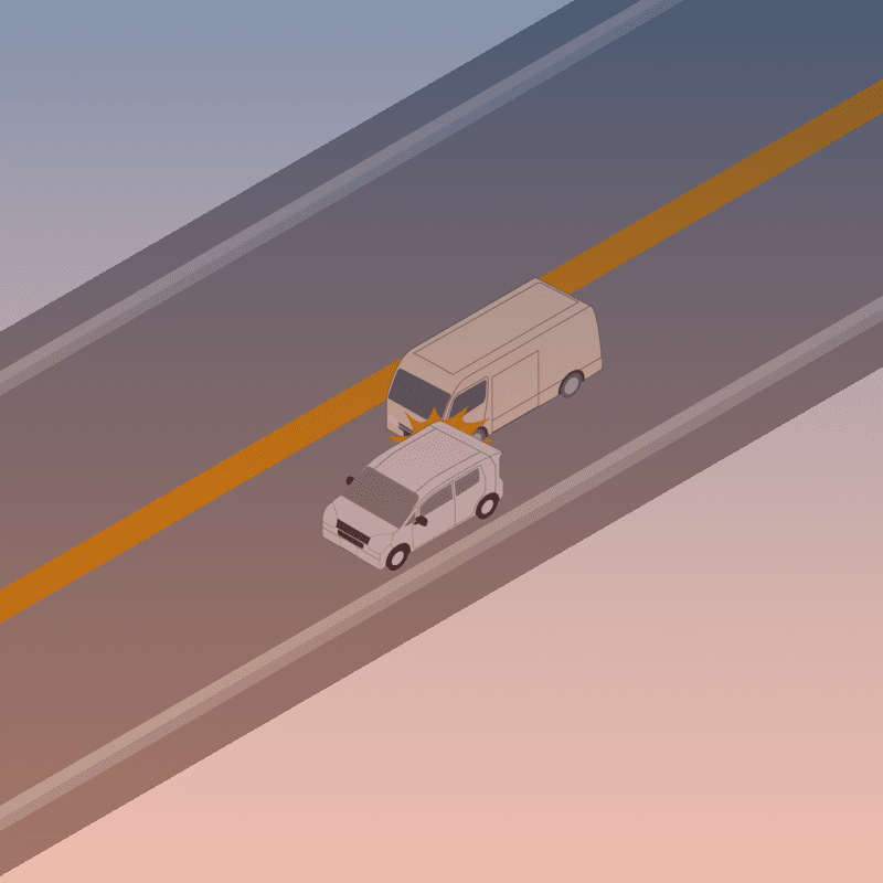 ・イラストに使用している各要素(車、背景、車、天候、信号、衝突地点など)は、代表的なイメージをイラスト化しており、色や形状等含め現実の事故の状況とは異なります。あくまで、事故のイメージとして参考までにご活用ください。