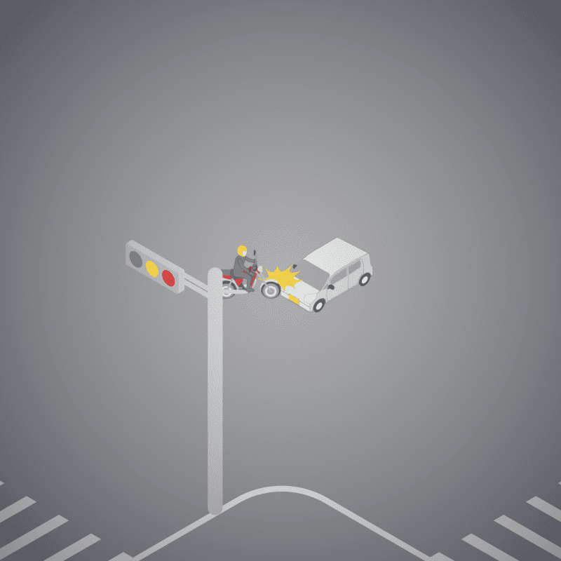 ・イラストに使用している各要素(車、背景、車、天候、信号、衝突地点など)は、代表的なイメージをイラスト化しており、色や形状等含め現実の事故の状況とは異なります。あくまで、事故のイメージとして参考までにご活用ください。