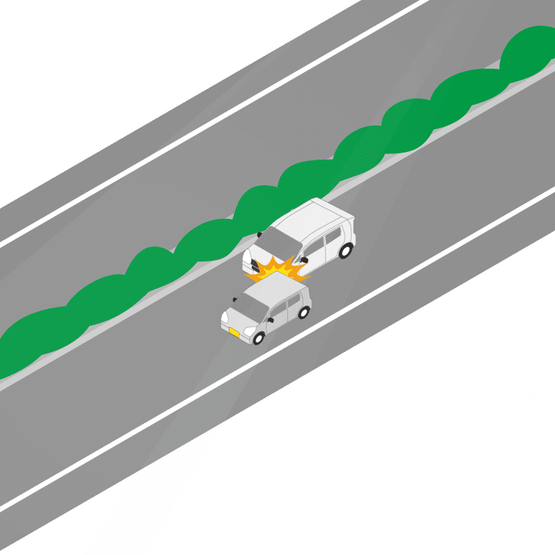 ・イラストに使用している各要素(車、背景、車、天候、信号、衝突地点など)は、代表的なイメージをイラスト化しており、色や形状等含め現実の事故の状況とは異なります。あくまで、事故のイメージとして参考までにご活用ください。