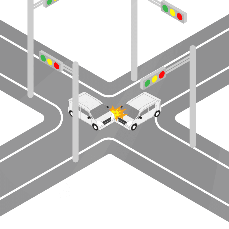 ・イラストに使用している各要素(車、背景、車、天候、信号、衝突地点など)は、代表的なイメージをイラスト化しており、色や形状等含め現実の事故の状況とは異なります。あくまで、事故のイメージとして参考までにご活用ください。