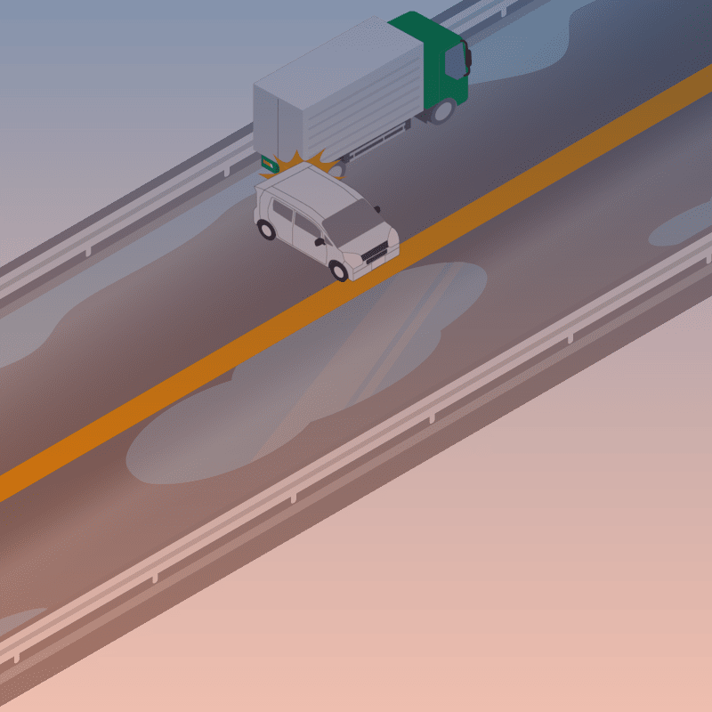 ・イラストに使用している各要素(車、背景、車、天候、信号、衝突地点など)は、代表的なイメージをイラスト化しており、色や形状等含め現実の事故の状況とは異なります。あくまで、事故のイメージとして参考までにご活用ください。