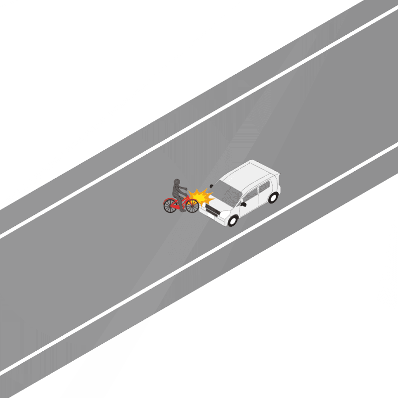 ・イラストに使用している各要素(車、背景、車、天候、信号、衝突地点など)は、代表的なイメージをイラスト化しており、色や形状等含め現実の事故の状況とは異なります。あくまで、事故のイメージとして参考までにご活用ください。