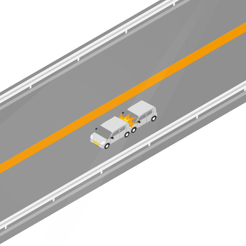 ・イラストに使用している各要素(車、背景、車、天候、信号、衝突地点など)は、代表的なイメージをイラスト化しており、色や形状等含め現実の事故の状況とは異なります。あくまで、事故のイメージとして参考までにご活用ください。