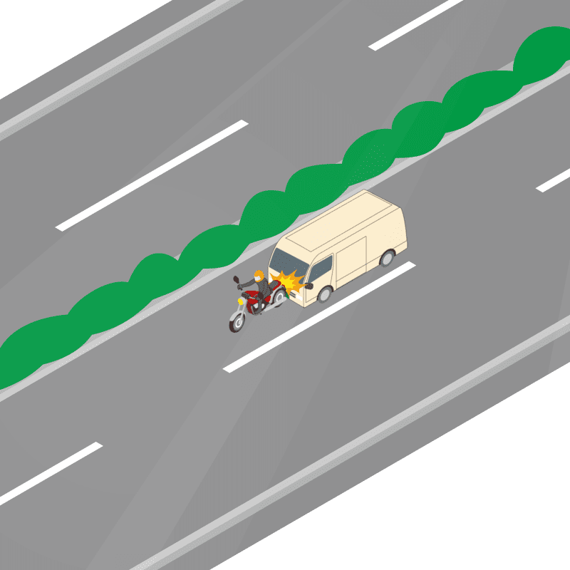 ・イラストに使用している各要素(車、背景、車、天候、信号、衝突地点など)は、代表的なイメージをイラスト化しており、色や形状等含め現実の事故の状況とは異なります。あくまで、事故のイメージとして参考までにご活用ください。
