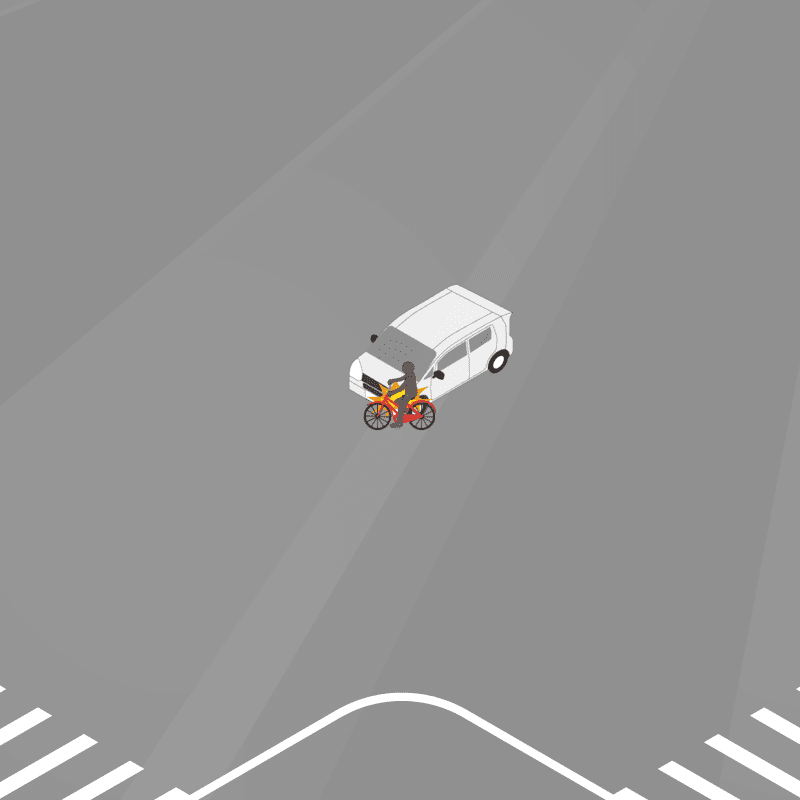 ・イラストに使用している各要素(車、背景、車、天候、信号、衝突地点など)は、代表的なイメージをイラスト化しており、色や形状等含め現実の事故の状況とは異なります。あくまで、事故のイメージとして参考までにご活用ください。