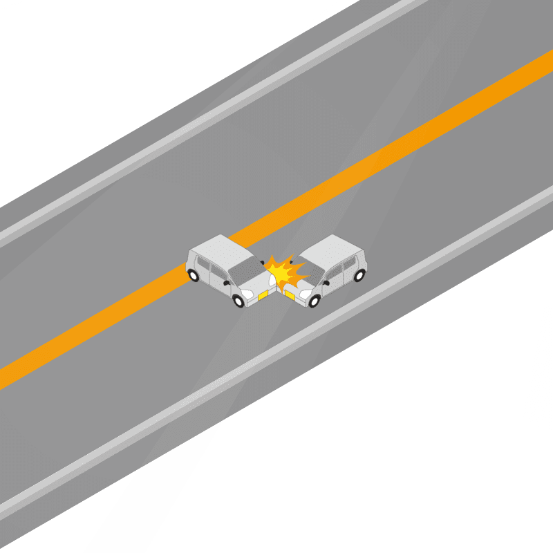 ・イラストに使用している各要素(車、背景、車、天候、信号、衝突地点など)は、代表的なイメージをイラスト化しており、色や形状等含め現実の事故の状況とは異なります。あくまで、事故のイメージとして参考までにご活用ください。