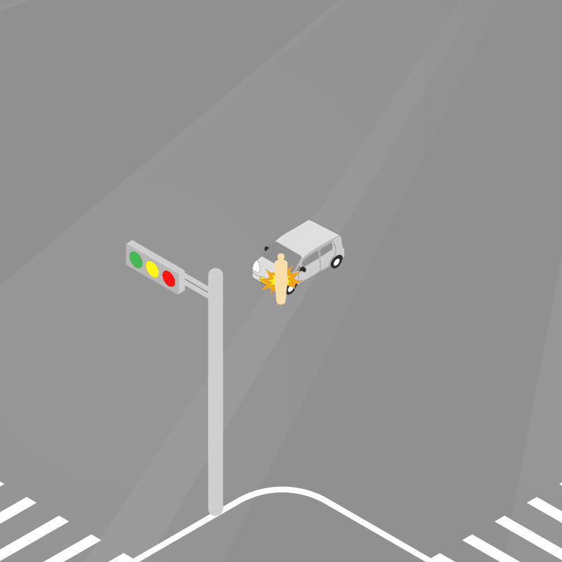 ・イラストに使用している各要素(車、背景、車、天候、信号、衝突地点など)は、代表的なイメージをイラスト化しており、色や形状等含め現実の事故の状況とは異なります。あくまで、事故のイメージとして参考までにご活用ください。