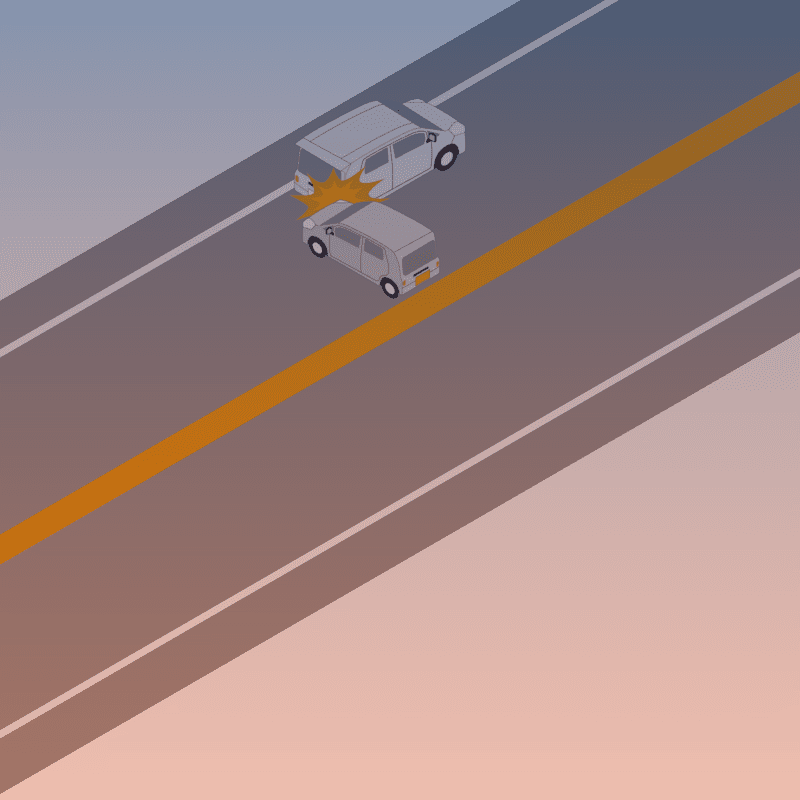 ・イラストに使用している各要素(車、背景、車、天候、信号、衝突地点など)は、代表的なイメージをイラスト化しており、色や形状等含め現実の事故の状況とは異なります。あくまで、事故のイメージとして参考までにご活用ください。
