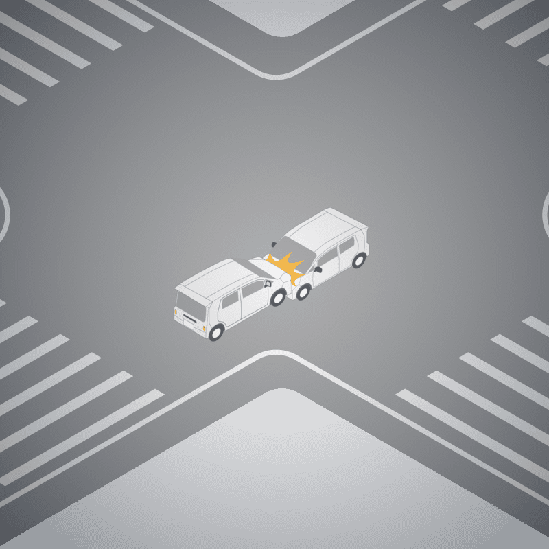 ・イラストに使用している各要素(車、背景、車、天候、信号、衝突地点など)は、代表的なイメージをイラスト化しており、色や形状等含め現実の事故の状況とは異なります。あくまで、事故のイメージとして参考までにご活用ください。
