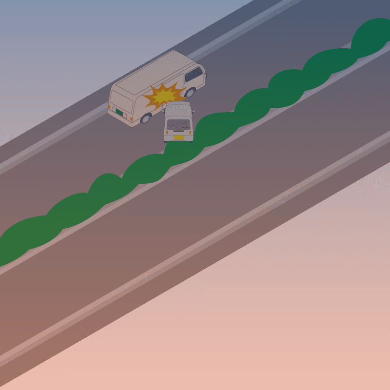 ・イラストに使用している各要素(車、背景、車、天候、信号、衝突地点など)は、代表的なイメージをイラスト化しており、色や形状等含め現実の事故の状況とは異なります。あくまで、事故のイメージとして参考までにご活用ください。