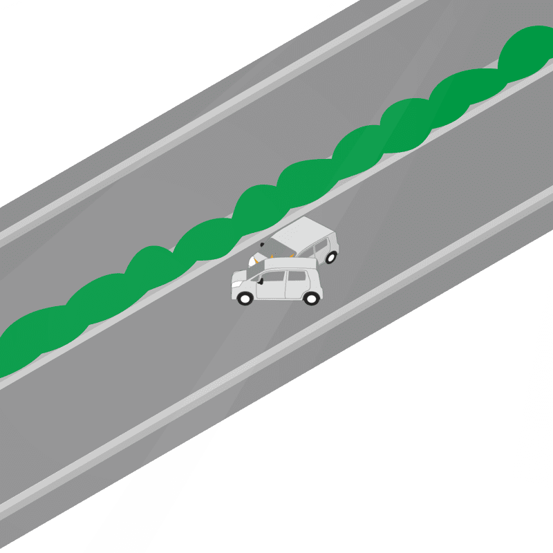 ・イラストに使用している各要素(車、背景、車、天候、信号、衝突地点など)は、代表的なイメージをイラスト化しており、色や形状等含め現実の事故の状況とは異なります。あくまで、事故のイメージとして参考までにご活用ください。