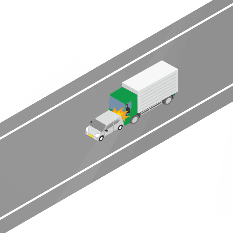 ・イラストに使用している各要素(車、背景、車、天候、信号、衝突地点など)は、代表的なイメージをイラスト化しており、色や形状等含め現実の事故の状況とは異なります。あくまで、事故のイメージとして参考までにご活用ください。
