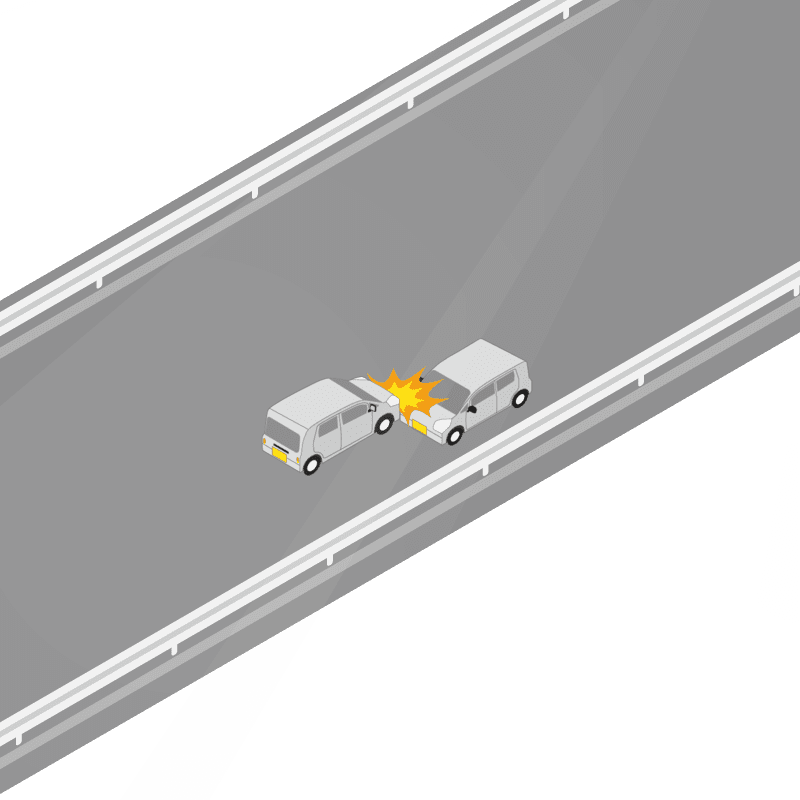・イラストに使用している各要素(車、背景、車、天候、信号、衝突地点など)は、代表的なイメージをイラスト化しており、色や形状等含め現実の事故の状況とは異なります。あくまで、事故のイメージとして参考までにご活用ください。