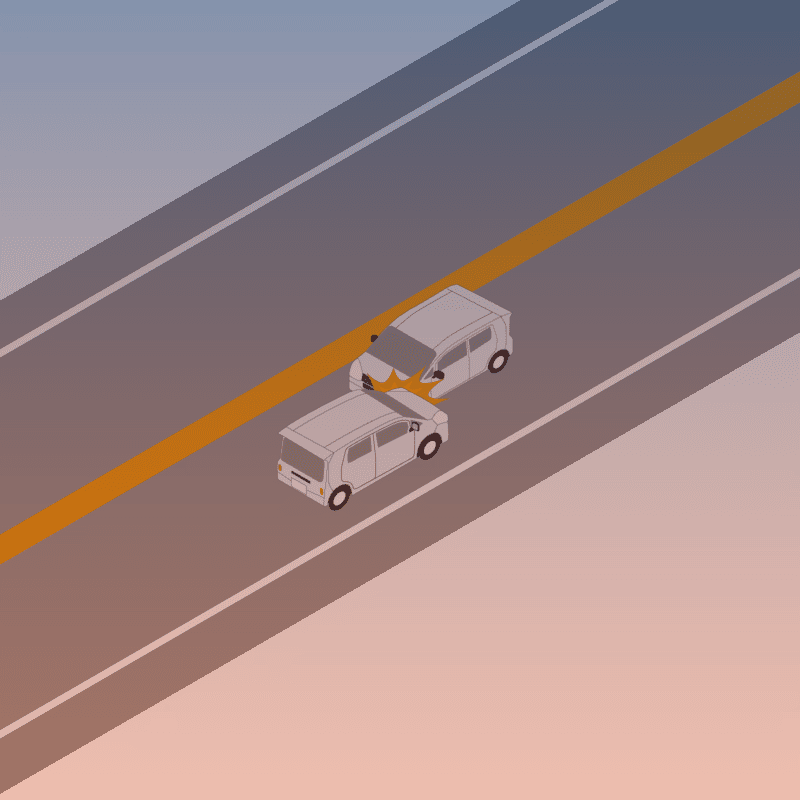 ・イラストに使用している各要素(車、背景、車、天候、信号、衝突地点など)は、代表的なイメージをイラスト化しており、色や形状等含め現実の事故の状況とは異なります。あくまで、事故のイメージとして参考までにご活用ください。