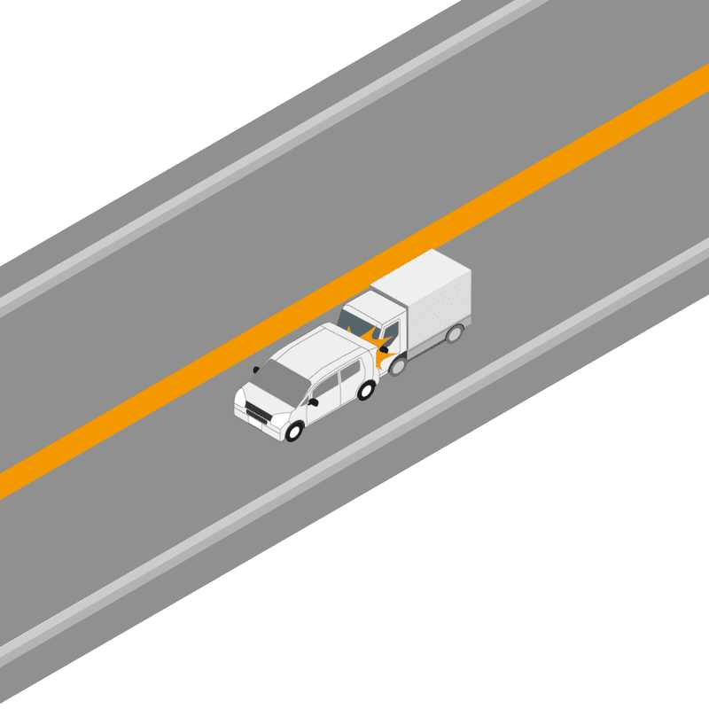 ・イラストに使用している各要素(車、背景、車、天候、信号、衝突地点など)は、代表的なイメージをイラスト化しており、色や形状等含め現実の事故の状況とは異なります。あくまで、事故のイメージとして参考までにご活用ください。