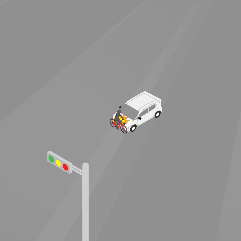 ・イラストに使用している各要素(車、背景、車、天候、信号、衝突地点など)は、代表的なイメージをイラスト化しており、色や形状等含め現実の事故の状況とは異なります。あくまで、事故のイメージとして参考までにご活用ください。