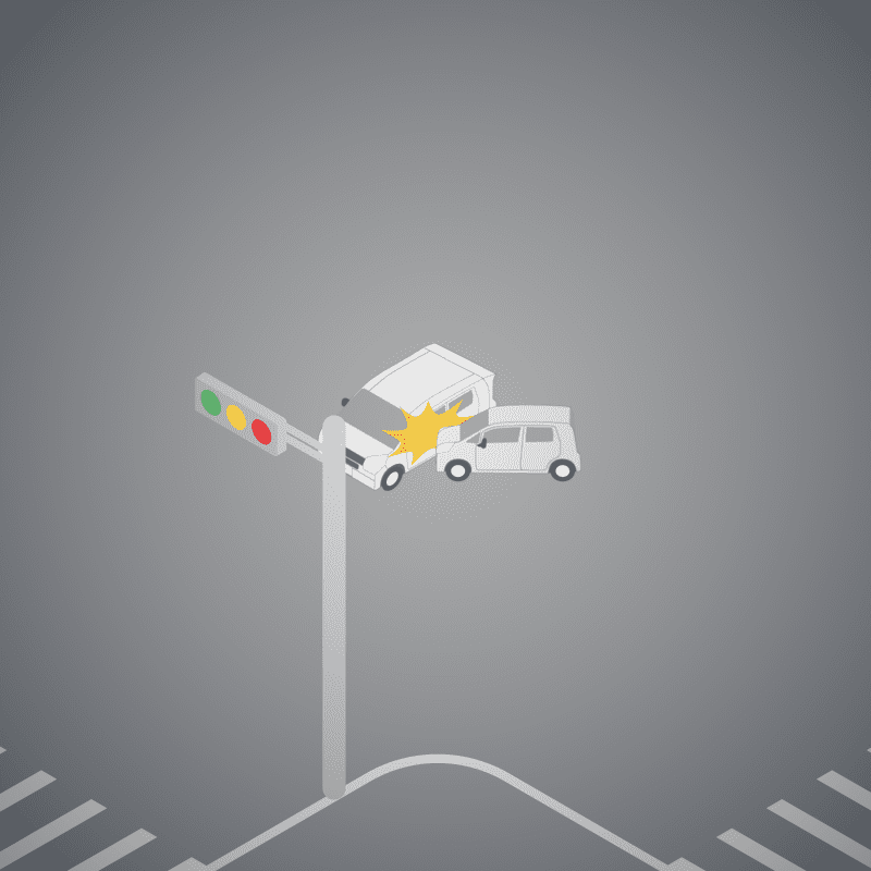 ・イラストに使用している各要素(車、背景、車、天候、信号、衝突地点など)は、代表的なイメージをイラスト化しており、色や形状等含め現実の事故の状況とは異なります。あくまで、事故のイメージとして参考までにご活用ください。