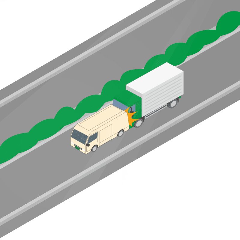 ・イラストに使用している各要素(車、背景、車、天候、信号、衝突地点など)は、代表的なイメージをイラスト化しており、色や形状等含め現実の事故の状況とは異なります。あくまで、事故のイメージとして参考までにご活用ください。