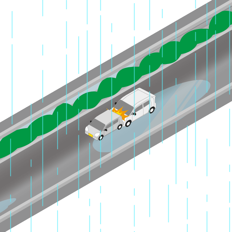 ・イラストに使用している各要素(車、背景、車、天候、信号、衝突地点など)は、代表的なイメージをイラスト化しており、色や形状等含め現実の事故の状況とは異なります。あくまで、事故のイメージとして参考までにご活用ください。