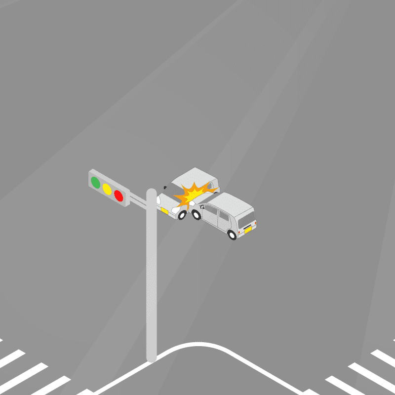 ・イラストに使用している各要素(車、背景、車、天候、信号、衝突地点など)は、代表的なイメージをイラスト化しており、色や形状等含め現実の事故の状況とは異なります。あくまで、事故のイメージとして参考までにご活用ください。