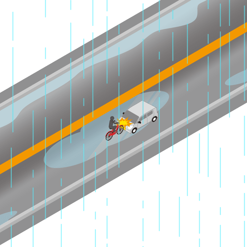 ・イラストに使用している各要素(車、背景、車、天候、信号、衝突地点など)は、代表的なイメージをイラスト化しており、色や形状等含め現実の事故の状況とは異なります。あくまで、事故のイメージとして参考までにご活用ください。