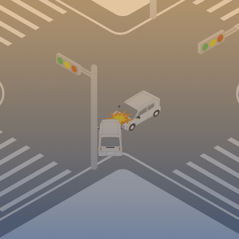 ・イラストに使用している各要素(車、背景、車、天候、信号、衝突地点など)は、代表的なイメージをイラスト化しており、色や形状等含め現実の事故の状況とは異なります。あくまで、事故のイメージとして参考までにご活用ください。