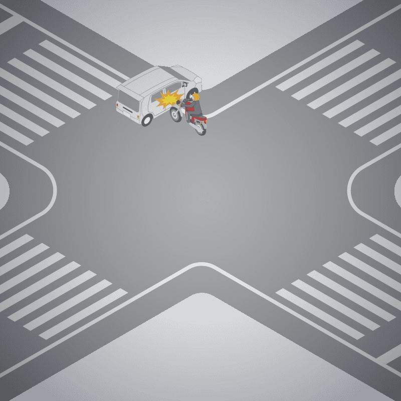・イラストに使用している各要素(車、背景、車、天候、信号、衝突地点など)は、代表的なイメージをイラスト化しており、色や形状等含め現実の事故の状況とは異なります。あくまで、事故のイメージとして参考までにご活用ください。