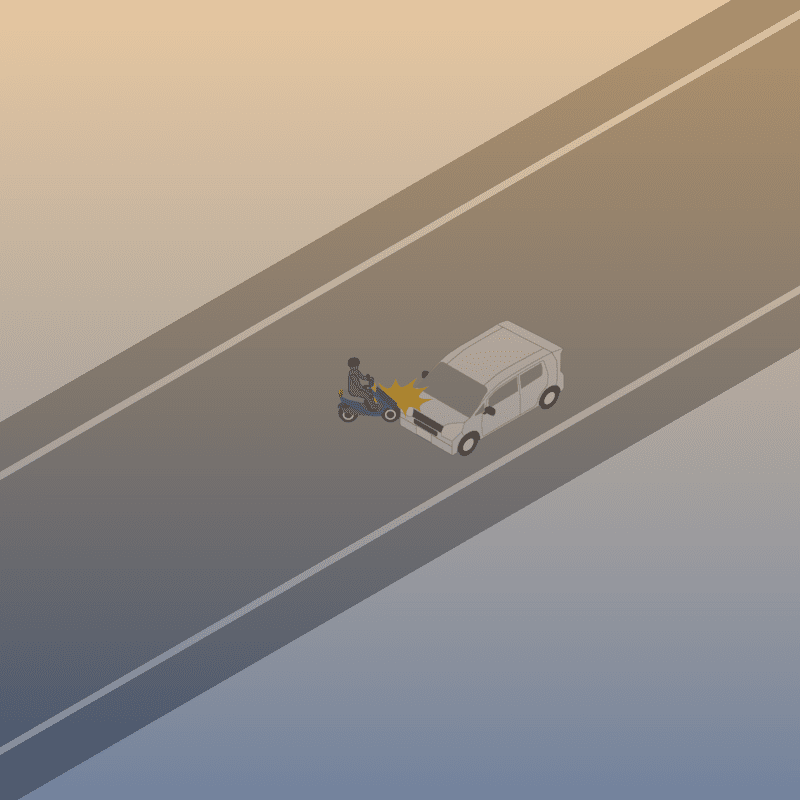 ・イラストに使用している各要素(車、背景、車、天候、信号、衝突地点など)は、代表的なイメージをイラスト化しており、色や形状等含め現実の事故の状況とは異なります。あくまで、事故のイメージとして参考までにご活用ください。