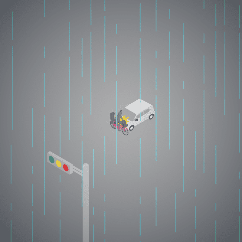 ・イラストに使用している各要素(車、背景、車、天候、信号、衝突地点など)は、代表的なイメージをイラスト化しており、色や形状等含め現実の事故の状況とは異なります。あくまで、事故のイメージとして参考までにご活用ください。