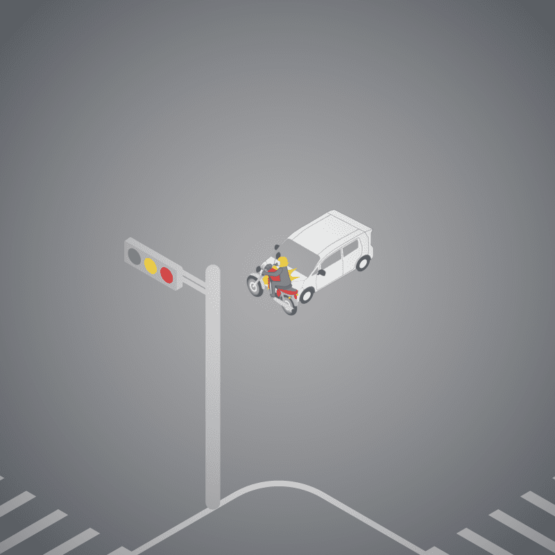 ・イラストに使用している各要素(車、背景、車、天候、信号、衝突地点など)は、代表的なイメージをイラスト化しており、色や形状等含め現実の事故の状況とは異なります。あくまで、事故のイメージとして参考までにご活用ください。