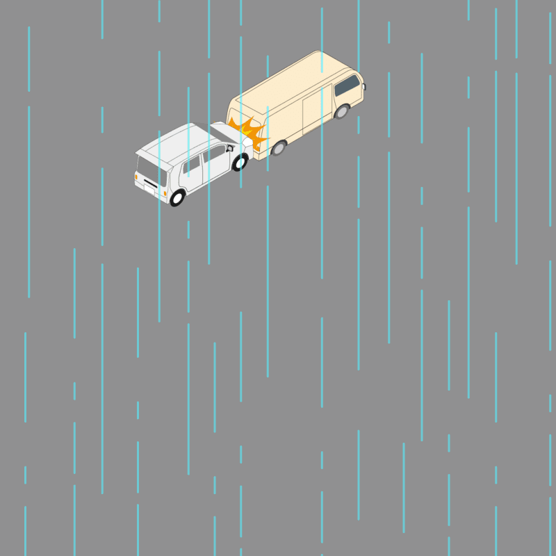 ・イラストに使用している各要素(車、背景、車、天候、信号、衝突地点など)は、代表的なイメージをイラスト化しており、色や形状等含め現実の事故の状況とは異なります。あくまで、事故のイメージとして参考までにご活用ください。
