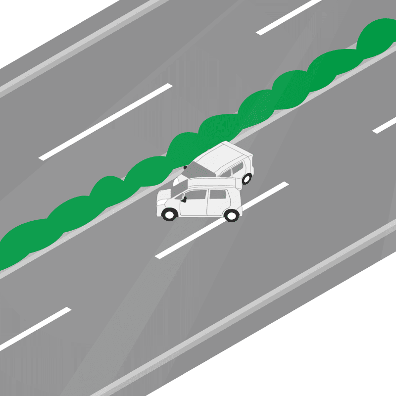 ・イラストに使用している各要素(車、背景、車、天候、信号、衝突地点など)は、代表的なイメージをイラスト化しており、色や形状等含め現実の事故の状況とは異なります。あくまで、事故のイメージとして参考までにご活用ください。
