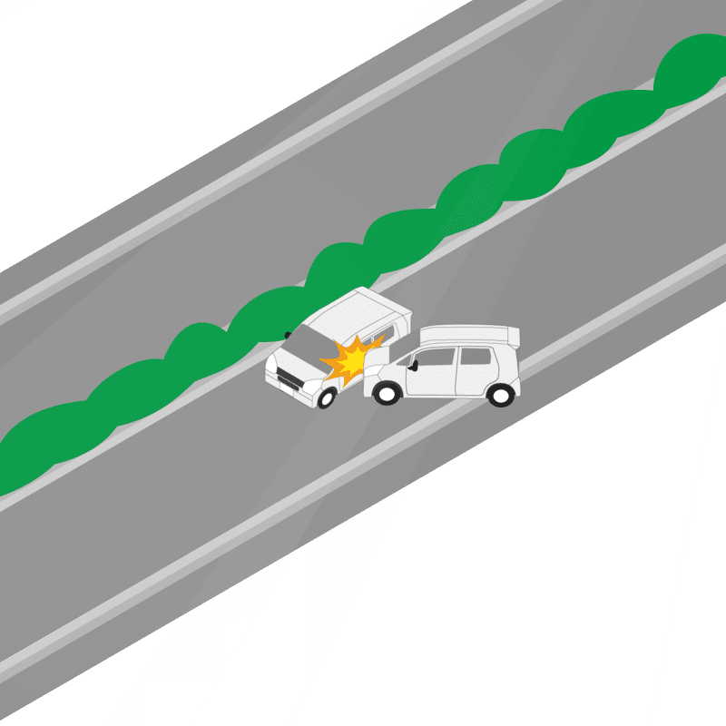 ・イラストに使用している各要素(車、背景、車、天候、信号、衝突地点など)は、代表的なイメージをイラスト化しており、色や形状等含め現実の事故の状況とは異なります。あくまで、事故のイメージとして参考までにご活用ください。