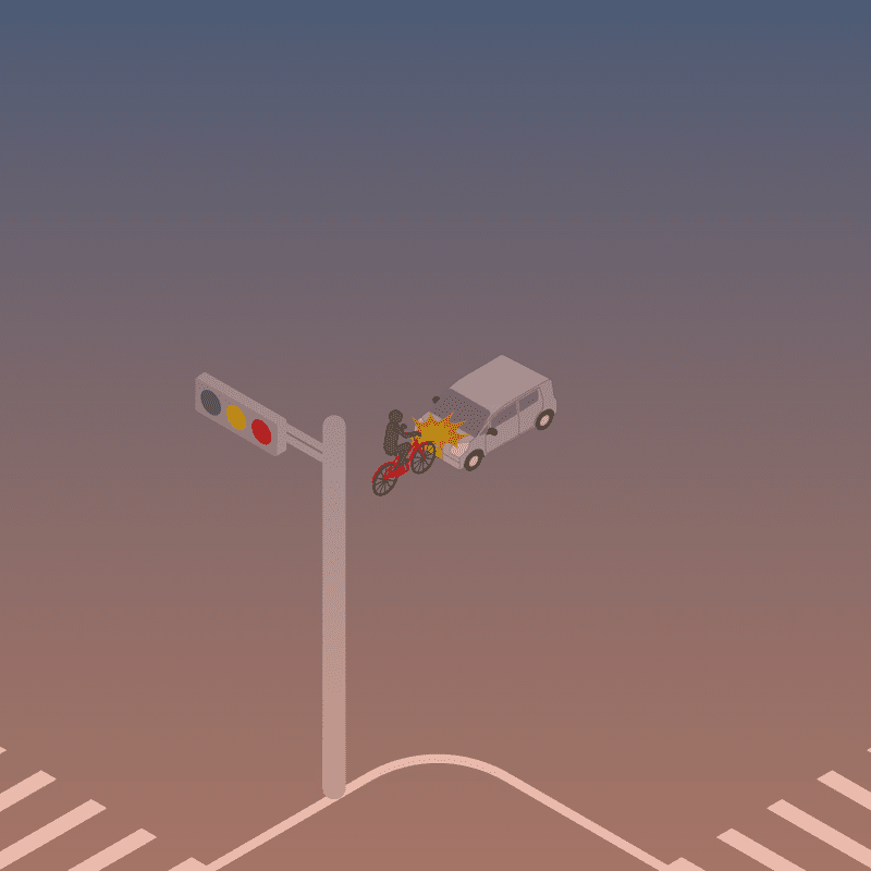 ・イラストに使用している各要素(車、背景、車、天候、信号、衝突地点など)は、代表的なイメージをイラスト化しており、色や形状等含め現実の事故の状況とは異なります。あくまで、事故のイメージとして参考までにご活用ください。