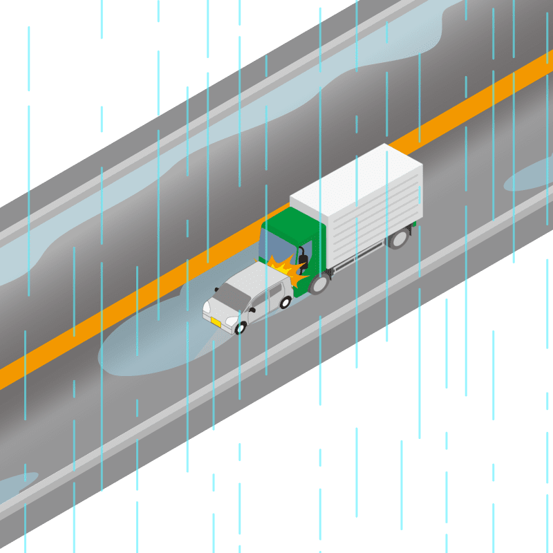 ・イラストに使用している各要素(車、背景、車、天候、信号、衝突地点など)は、代表的なイメージをイラスト化しており、色や形状等含め現実の事故の状況とは異なります。あくまで、事故のイメージとして参考までにご活用ください。