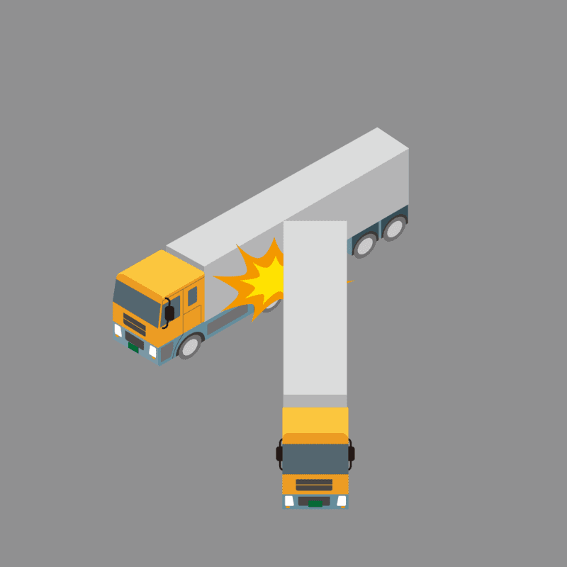 ・イラストに使用している各要素(車、背景、車、天候、信号、衝突地点など)は、代表的なイメージをイラスト化しており、色や形状等含め現実の事故の状況とは異なります。あくまで、事故のイメージとして参考までにご活用ください。