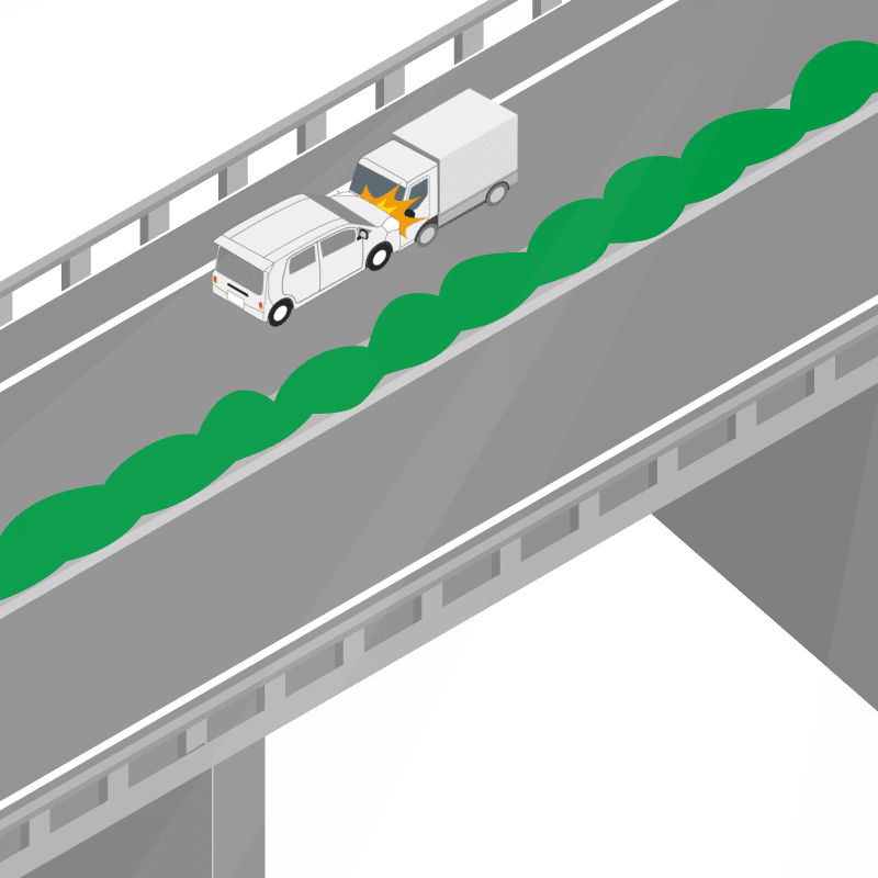 ・イラストに使用している各要素(車、背景、車、天候、信号、衝突地点など)は、代表的なイメージをイラスト化しており、色や形状等含め現実の事故の状況とは異なります。あくまで、事故のイメージとして参考までにご活用ください。