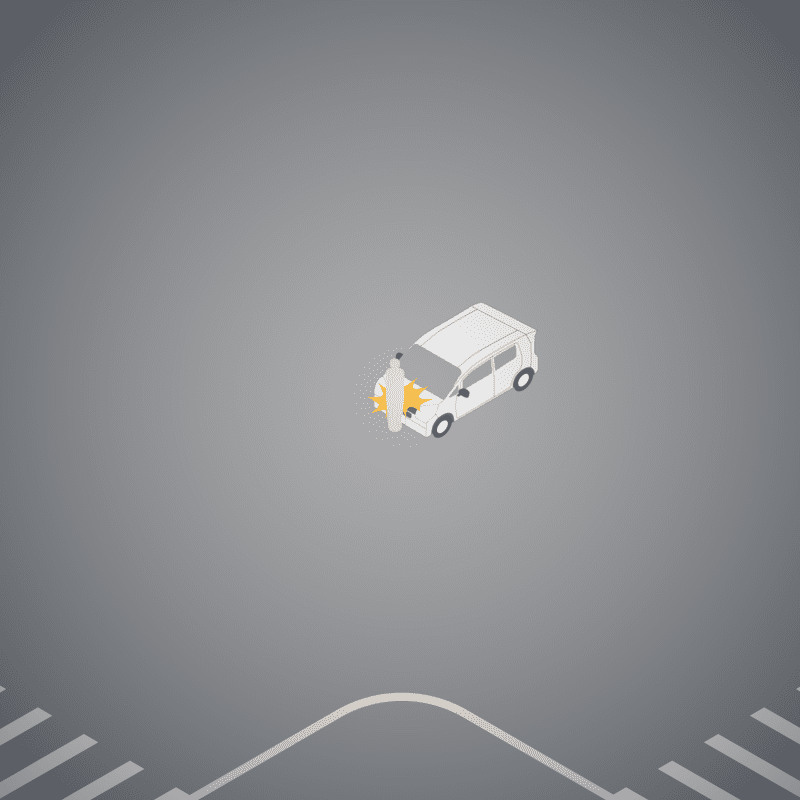 ・イラストに使用している各要素(車、背景、車、天候、信号、衝突地点など)は、代表的なイメージをイラスト化しており、色や形状等含め現実の事故の状況とは異なります。あくまで、事故のイメージとして参考までにご活用ください。