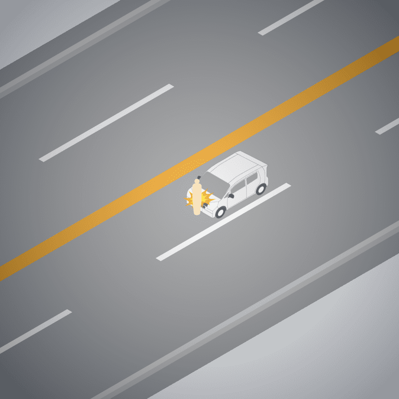 ・イラストに使用している各要素(車、背景、車、天候、信号、衝突地点など)は、代表的なイメージをイラスト化しており、色や形状等含め現実の事故の状況とは異なります。あくまで、事故のイメージとして参考までにご活用ください。